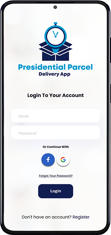 The login display screen is your gateway to convenience. Easily get admission to the app together with your e-mail or social media money owed. We value your time, and with a few clicks, you will be on your way to sending or receiving packages with Presidential Parcel Delivery. "